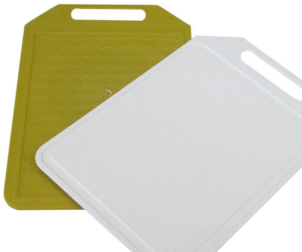 - Пластик — относится к прочному и долгосрочному материалу, не впитывает запахи, не намокает, но имеет и свои минусы: ножи затупляет, не имеет антибактериального покрытия, на поверхности появляются со временем мелкие трещинки на радость бактериям. Пластик является отличным вариантом для разделки сырой рыбы. Использовать как подставку под горячее нельзя.