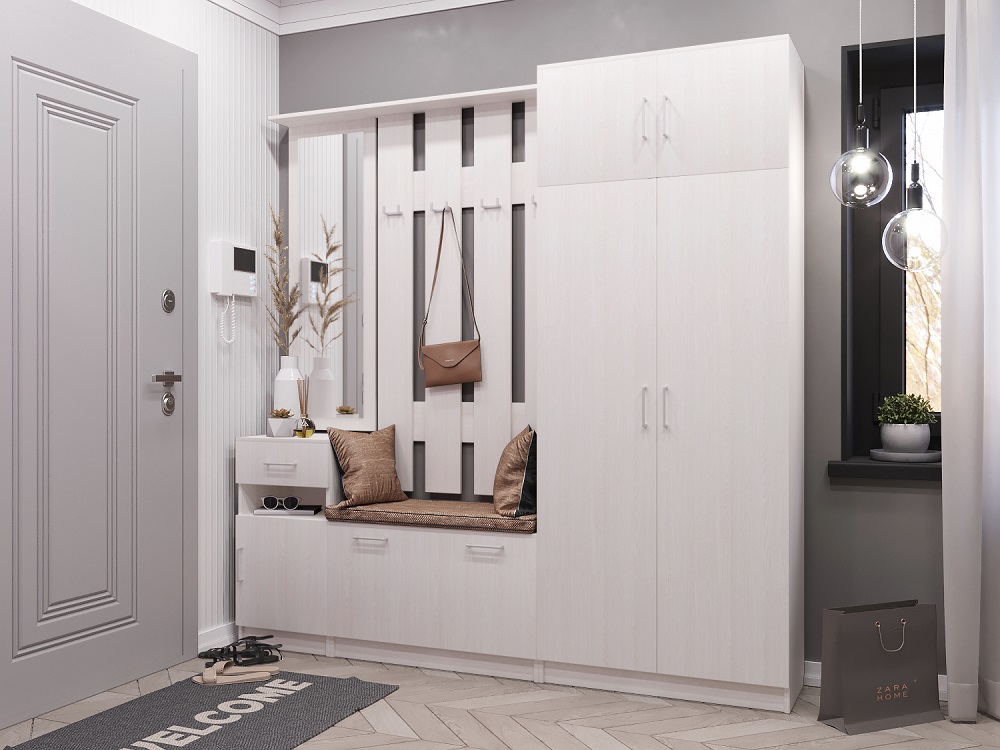 Комод: можно поставить шкаф с раздвижными дверями, если у вас достаточно места. Однако в небольших прихожих лучшим вариантом может стать простой комод, в котором можно разместить мелкие предметы — зонты, шляпы, шарфы, сумки для покупок. Нижние полки можно использовать для хранения обуви.