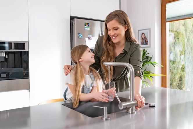 К тому же, фильтр для воды, установленный под раковиной, – очень элегантное решение, ведь единственным видимым элементом является излив, который работает как обычный кран: открыв его, можно набрать питьевую воду очень хорошего качества. Он способен очищать более 370 литров водопроводной воды в день.