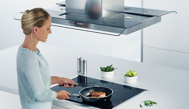 - Наклонные - современный и стильный вариант, который обеспечивает хорошую видимость варочной поверхности.