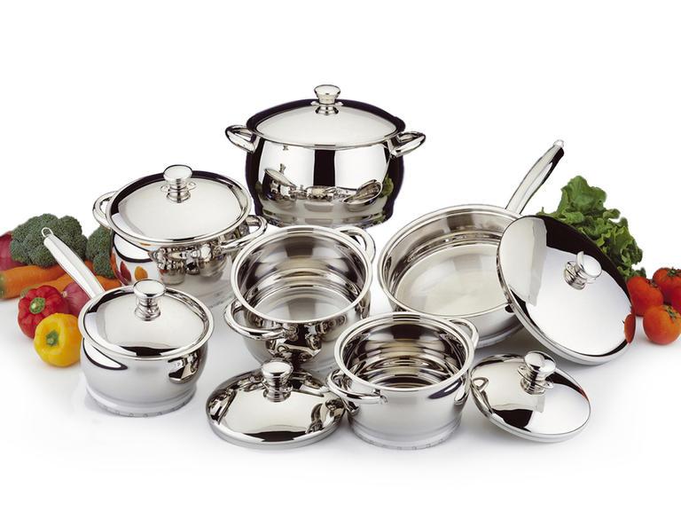 2. Высокое качество материалов, используемых в производстве. Посуда производится из экологически чистых материалов и гигиеничных сплавов, нейтральных химически, что не сказывается на запахе, вкусе и цвете готовящейся в ней пищи, накопление микробов на поверхности исключается. Посуда имеет долгий срок службы, при этом не теряет свой первоначальный вид, не поддается коррозии.