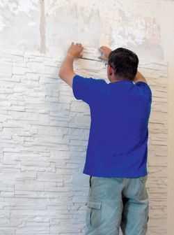 Поверхность стены очищают от пыли и сделать канавку для кабеля. Стену прогрунтовать. Распланировать, как клеять плитку, чтобы уменьшить количество отходов. Уровнем наметьте первую полосу. Мастерком наносите раствор по всей поверхности пластины и прижать ее к стене. Режьте плитку угловой шлифовальной машиной.