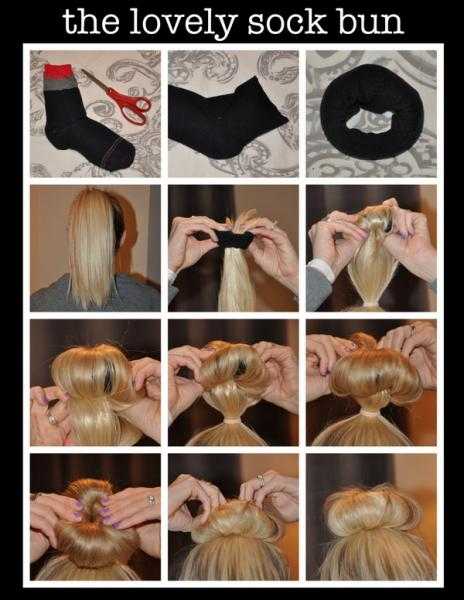 Теперь скатываете носок с волосами к корням. Вы должны получить идеальный пучек.