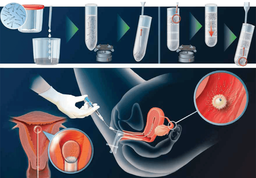 Врач изучает менструальный цикл женщины, выбирая оптимальное время для процедуры — за день до овуляции. Чтобы повысить шансы на успех, процедуру можно повторить несколько раз за один цикл — обычно это 2–3 раза с интервалом в несколько дней. Существует два варианта процедуры. В первом случае используется естественный цикл женщины, во втором же овуляция стимулируется при помощи гормональных препаратов.