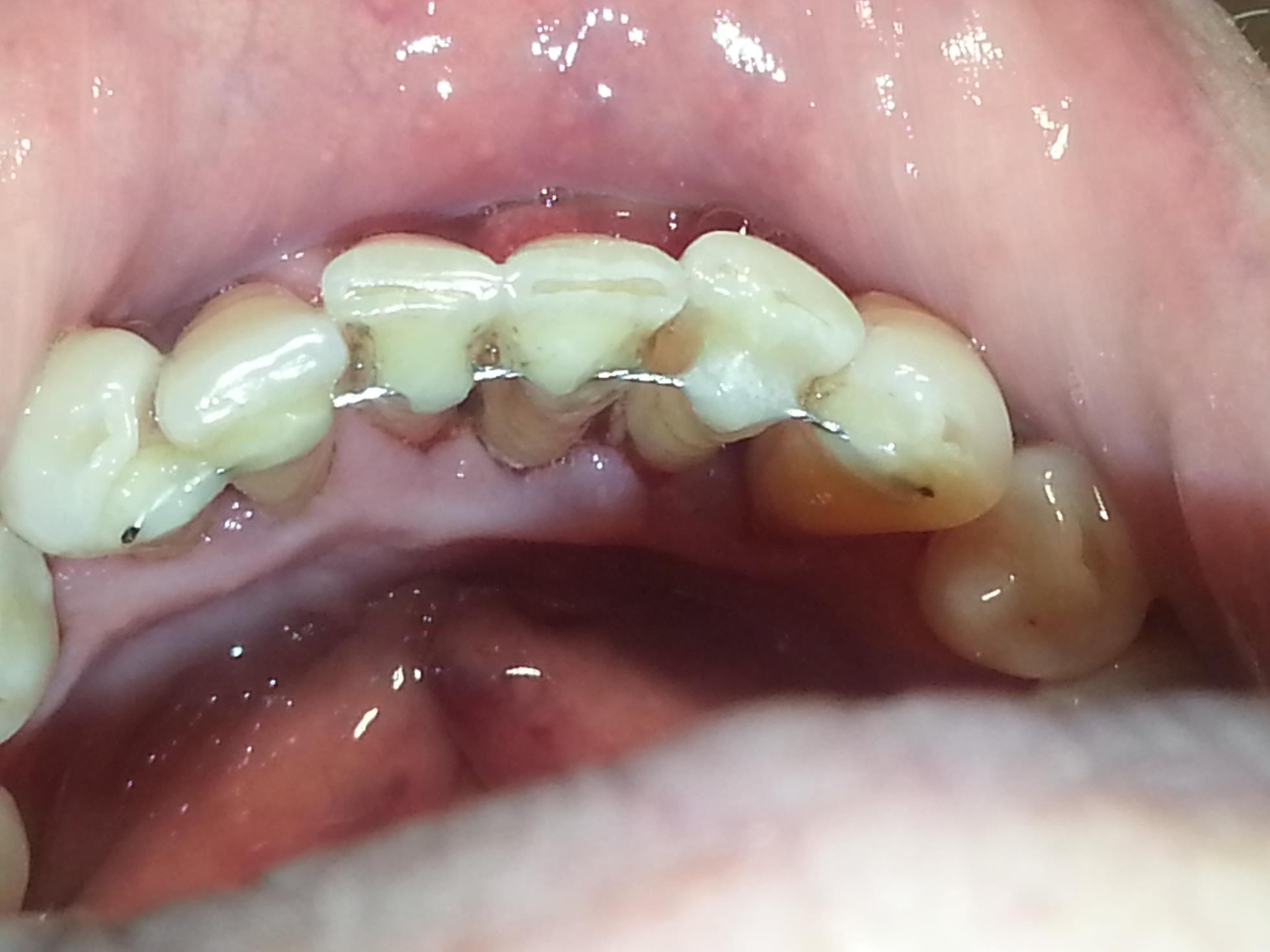 1. Экстра-корональное. В данном случае металлическая дуга крепится к передней или задней части зубного ряда с помощью стоматологического клея, обычно на уровне нижних передних (резцовых) зубов.<
