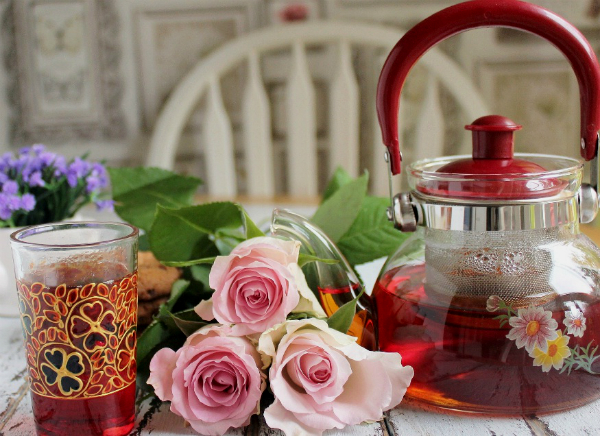 Из лепестков чайной розы получается изумительный напиток. Для заваривания такого чая годятся специальные сорта чайной розы, в которых содержаться эфирные масла. Использовать следует только свежие лепестки, увядшие лучше не применять, и мыть их нельзя, что бы ни смыть полезные вещества. Просто собрать и сразу сушить. В наше время наибольшей популярностью пользуется чай «Каркаде», розы выращивают в Африке и чай заваривают из лепестков цветка.