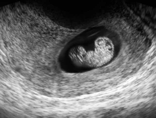 пятна медленно превращаются в глазные яблоки, также можно увидеть дырочки, которые вскоре превратятся в ноздри. Также видны зачатки языка, рта и зубов. Руки и ноги значительно вырастают, а на их концах есть семена для рук и ног. Сердце разделено на правый и левый желудочки, и оно бьется четко и быстро - примерно в два раза быстрее вашего. У ребенка уже сформирован скелет, хотя пока он состоит только из мягких хрящей. Внутренние органы все еще развиваются, особенно пищеварительная система - кишечник и печень, но также и внутренние половые органы - у мальчика формируются пенис и яички, а у девочки - яичники. Хотя эти органы уже формируются, снаружи их не видно, поэтому на УЗИ определить пол ребенка не представляется возможным .