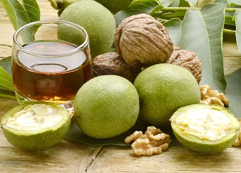 Отвар из кожуры недозревшего зеленого ореха успешно борится с глистами в организме. Сбор урожая зеленых орехов производится в июне, июле месяце. Важно помнить, что употреблять настойку следует не больше месяца, обязательно делать перерывы. Не рекомендуется применение настоек при гипертиреозе, тромбофлебите и заболеваний почек, особенно при обострении, индивидуальной непереносимости. Употреблять настойку следует от десяти до сорока капель растворенных в четверть стакана воды 2-3 раза в день перед едой.