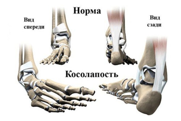 - Косолапость. Стопа постепенно укорачивается и подгибается вовнутрь.