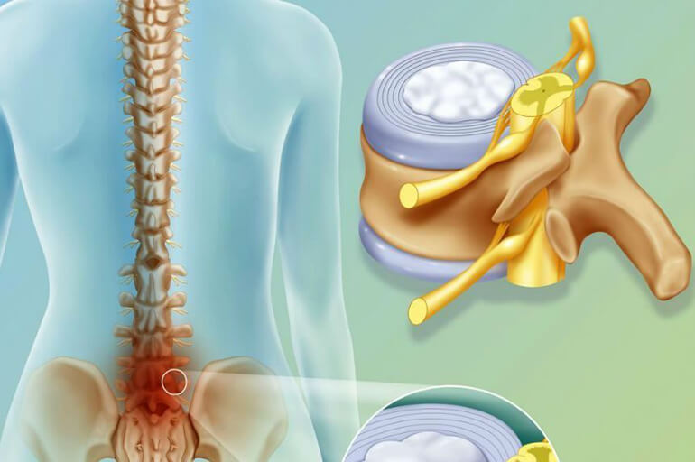 В результате повреждения фиброзного кольца нарушается целостность структуры, ядро выпячивается, выпадает в позвоночный канал и защемляется там, что причиняет человеку сильную боль и прочие неудобства.