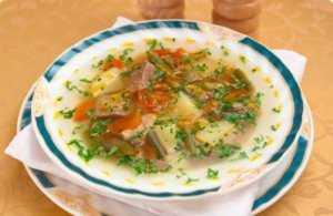 Картофель почистить, нарезать кубиками, добавить его в бульон и варить 5 минут.