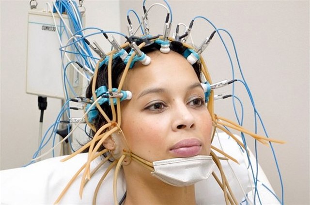 Между кожей головы и электродами помещается специальный гель, чтобы уменьшить помехи и обеспечить лучшую передачу электрического сигнала.