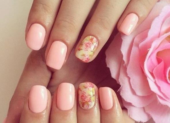 Также можно обратить внимание на маникюр с использованием цветочного принта. Такой маникюр смотрится на ручках очень романтично и женственно. Достаточно просто украсить цветами всего один ноготок, и это придаст шикарный эффект всему вашему образу.