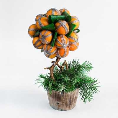 На Новый год вы можете порадовать себя и своих близких, создав своими руками мандариновое дерево, которое выглядит и пахнет как настоящий праздник. Используйте флористическую основу для закладывания в горшок, листья растения Салала (или другого) для декора мандаринов и ветки хвои (их можно окунуть влажными в сахарную пудру или соль для придания эффекта “инея”) для завершения композиции.