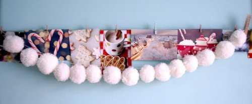 Совсем несложно сделать новогоднюю гирлянду из помпонов. Отдельные помпончики можно повесить на елку вместо новогодних шаров.