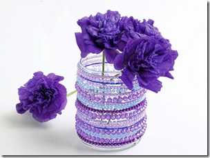 Нанизываем бусины на нитку и приклеиваем на вазу с помощью суперклея. Очередность цветов - на ваше усмотрение.