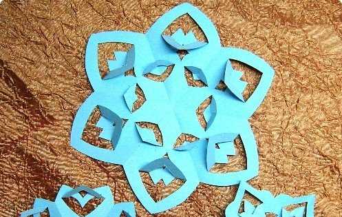 Для изготовления таких снежинок можно изготовить шаблончик, который поможет сложить правильную шестилучевую снежинку.