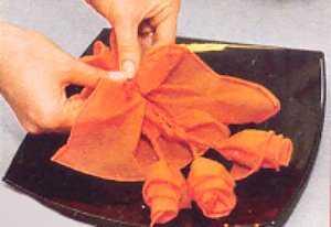 Аккуратно скатать одну сторону салфетки (не более 2 см) – края будущего бутона.