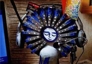 С помощью горячего клея (или любого клея для дерева) наклейте на обе стороны фанерного круга обыкновенные деревянные прищепки. Располагайте их по кругу, рабочими частями наружу (см. фото).