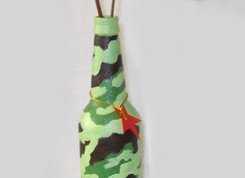 Вырезаем звездочку, прикрепляем ее на красивый шнур и вешаем на горлышко бутылки. Декор бутылки готов. Теперь ее можно использовать как вазу (тогда ставим в нее цветы и поздравляем мужчину), а можно наполнить напитком, который он любит.
