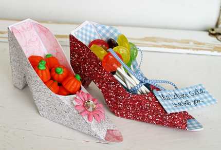 Еще одна модель «туфлей» для упаковки для небольшого подарка или конфет (другую модель можно посмотреть здесь ).