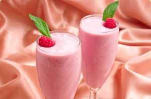 Малину (или другую ягоду) положить в кастрюльку, добавить сахар, довести до кипения, а затем протереть через сито и охладить. В охлажденную малину добавить молоко и мороженое и взбивать блендером или миксером в течение 2-3 минут.