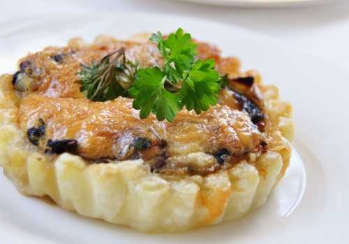 Продукты: маргарин - 100 г, мука - 100 г, сыр - 100 г тертого, вода - 200 мл холодной, грибы - 200 г, сметана - 50 мл, чеснок - 2 зубчика, масло - 2 ст.л., яйца — 6 шт. небольших, соль, черный перец.