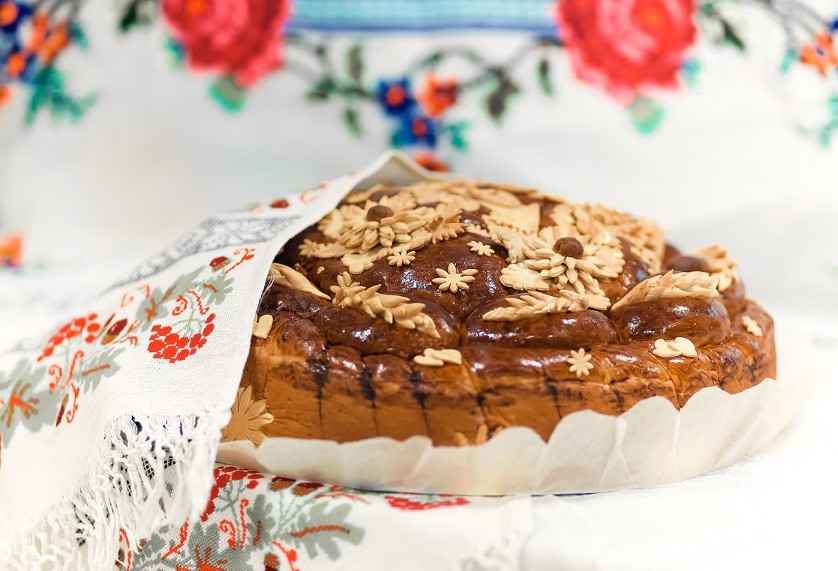 - Весільний коровай. Його прикрашають фігурками з тіста, а іноді поливають медом і навіть фарбують окремі деталі. Він виконує і роль прикраси, і роль частування. Традиційний коровай випікається як звичайний хліб, але часто його роблять солодким за допомогою сухофруктів і горіхів. Зараз замовити весільний коровай в Києві можна майже будь-якого розміру.