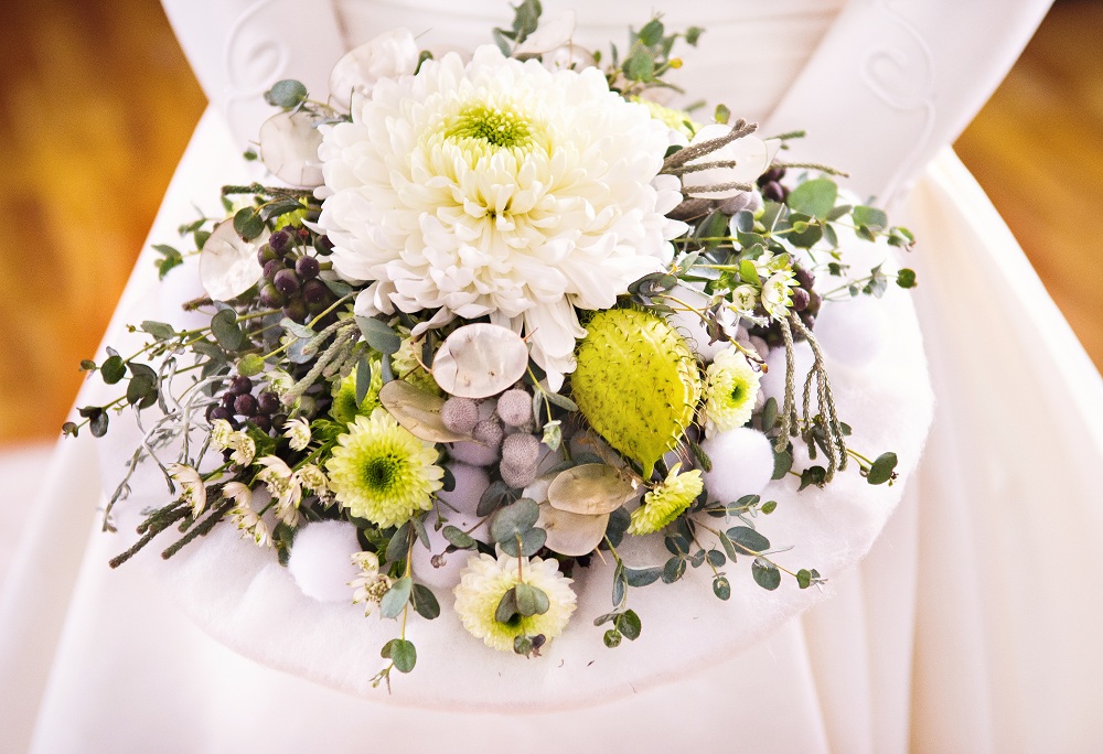 Хотя большинство свадебных церемоний проходит весной и летом, многие пары не против пожениться зимой. Цветочная обстановка такой церемонии также должна отражать это особенное время. Эта роль идеально подойдет модным хризантемам, из которых можно составить красивые зимние свадебные букеты.