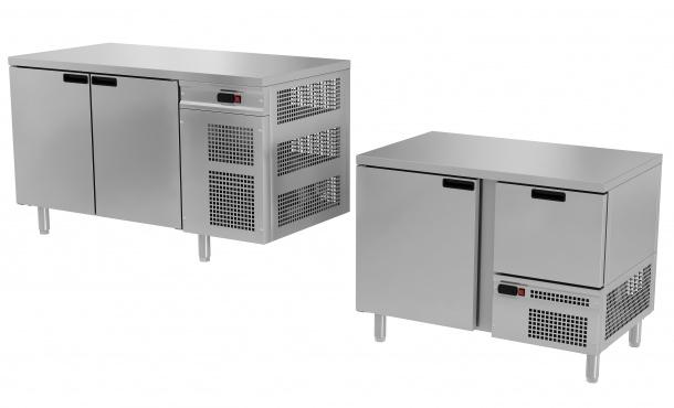 Столы холодильные состоят из стальных внутри и снаружи корпусов и поверхностей, стальных, гранитных или пластиковых столешниц, которые можно встроить в барные стойки или разные прилавки и использовать автономно. Распашные дверки и выдвигающиеся полки обеспечивают комфортный доступ к хранящимся продуктам. Дверки (раздвижные, распашные право- или левосторонние) плотно закрываются благодаря наличию магнитного уплотнителя.