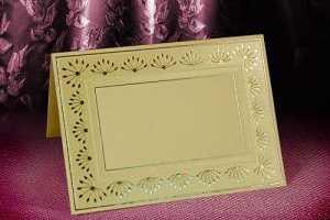 Рассадочные карточки – маленькие, но очень необходимые предметы. Это миниатюрные открытки, сложенные пополам, которые подписывают и ставят напротив места определенного гостя.
