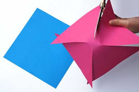 4. Выполните все эти действия с другим листом цветной бумаги, а затем составьте два квадрата вместе.