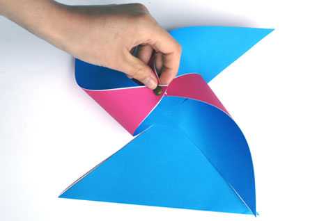 5. Загните каждую из частей левым углом к ??центру так, чтобы дырочка в углу детали совпала с дырочкой в ??центре.