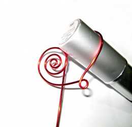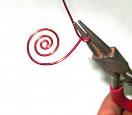 Используйте круглые плоскогубцы, чтобы наматывать проволоку, как показано на изображении. Нужно поймать края проволоки и сделать круглую петлю, которая будет находиться в центре спирали.
