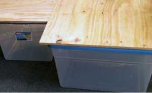 На контейнеры положим куски фанеры.
