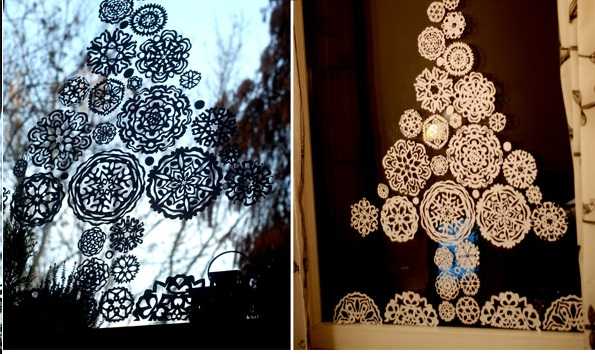 Это то, что вы можете сделать сами из десятка листов А4 бумаги для принтеров с помощью ножниц. Детям очень понравится кружевное дерево в окне. Красивое и днем и ночью.