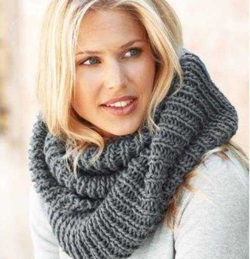 Или по-другому: шарф-хомут, мини-Снуд. Этот вариант хорош тем, что выполняет функцию не только шарфа, но и воротника, а также (при необходимости) капюшона или шапки. Кроме того, он может быть прекрасным дополнительным аксессуаром даже до делового костюма (это как связать!).