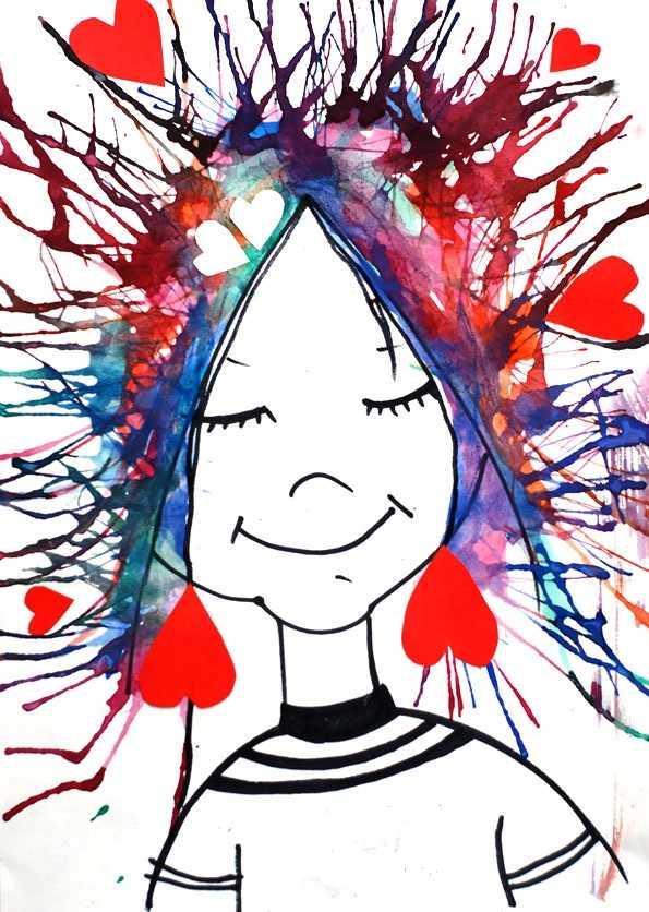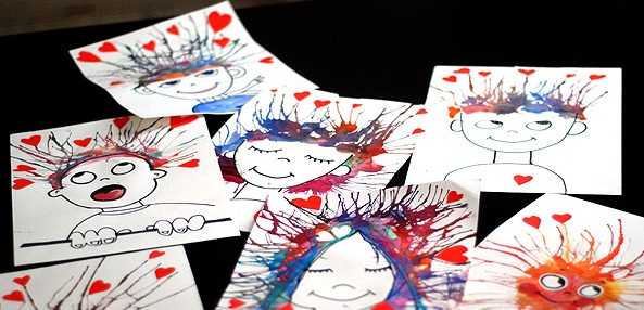 - капаем краску и раздуваем ее трубочкой - делаем волосы