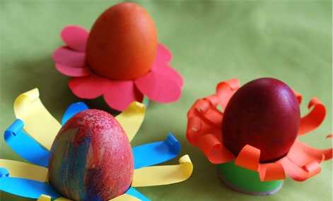 Эти подставки для яиц сделаны из рулона от туалетной бумаги и полосок цветной бумаги.