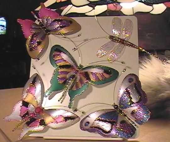 Последний штрих – наносим акриловый лак на поверхность бабочек (это обеспечит защиту изделия от вредного влияния окружающей среды). После полного высыхания лака можно доработать бабочек. Крылья украшаем мелким бисером, стразами, приделываем из тонкой проволоки усики, формируем из бусинок тельце. Такие бабочки послужат оригинальным украшением для штор, комнатных растений, стен и т д.