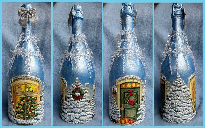 Декупаж бутылки шампанского – отличный способ украсить свой новогодний стол. А также оригинально украшенная бутылка может послужить интересным подарком вашим друзьям к празднику или другому торжеству. Нужно только оформить бутылку согласно теме. Сегодня мы научимся украшать шампанское для новогодних праздников.