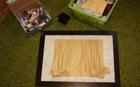 У нас получились оригинальная картина из ткани на стену и объемное панно, на которые мы потратили минимум материала.