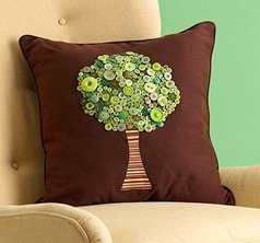 Эту подушку украшает необычная картина — дерево: его ствол - из войлока, а листва — много пуговиц, различных форм и размеров (для формирования кроны дерева пуговицы пришиваются к наволочке, слегка перекрывая друг друга.