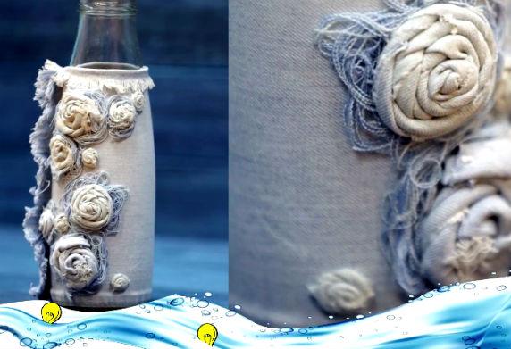Надеваем нашу джинсовую вазочку на бутылку из-под молока и можно пользоваться. Такая замечательная вещица пригодится как в домашнем интерьере, так и в качестве подарка друзьям или близким. Думаем, что подаренный вами презент, обязательно будет оценен. Желаем всем творческих успехов.