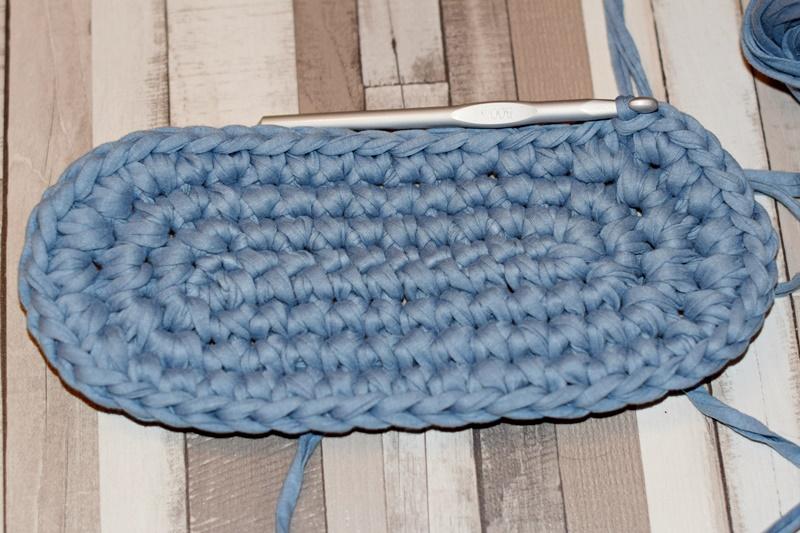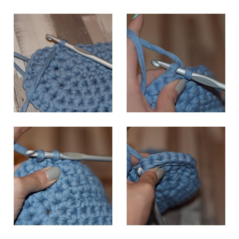 Начинаем вязать дно корзинки, затем продолжаем по кругу столбиками: