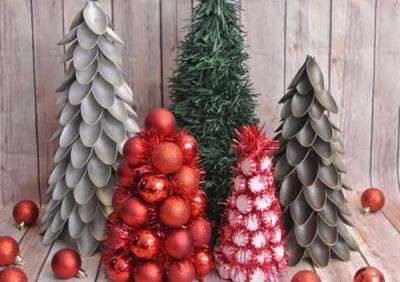 Если вы рисуете спину, дождитесь полной задержки и нарисуйте чайную ложку на другой стороне. После того, как все детали высохли, их следует прикрепить к бумаге с помощью самоклеющегося пистолета. Поместите елочку, расклеив все ложки в отдельные ряды. Начните делать эту работу снизу, как показано на рисунке. Следуя этим рекомендациям, вы сможете создать очень необычную елку, которая станет настоящим украшением вашего праздника. Точно так же можно делать елочки с мишурой или новогодними шариками.