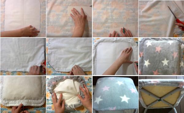 Табурет с устаревшим дизайном или жестким сиденьем найдется в каждом доме. Однако отдыхать длительное время на таком мебельном изделии довольно-таки неудобно. Поэтому для комфортного сидения многие используют подушки, которые постоянно съезжают. Предлагаем скользящий кухонный атрибут сменить на чехол с мягким наполнителем, сшитый собственными руками. Думаем, что данный мастер-класс по изготовлению мягкого чехла, многим станет полезен.