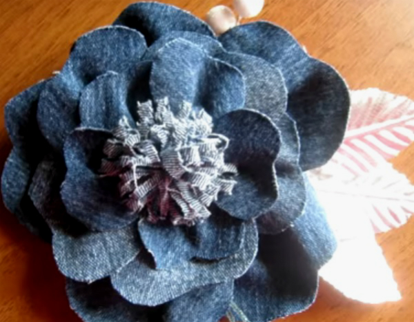 Продолжаем тему изготовления изделий из старых джинсов. Сегодня мы с вами сделаем цветочную композицию для украшения, например, летнего легкого джинсового пиджака. Изготовим красивый цветок с застежкой, по желанию можно его просто пришить на нужное вам место.