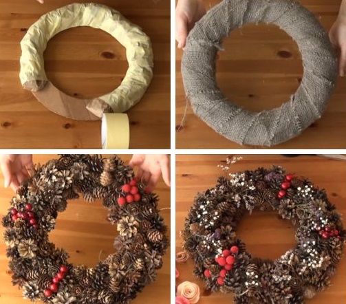Новый год – это, как всегда, нарядная елка, мандарины, подарки, Дед Мороз, снег, бой курантов, шампанское, веселье. А чтобы настроение было полностью волшебным, дополнить праздничную атмосферу можно украшением, сделанным собственными руками. В сегодняшнем мастер-классе мы покажем вам, как можно быстро и просто изготовить новогодний или рождественский венок, который также станет праздничным атрибутом.