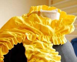 Стягиваем шов в небольшие рюши. Теперь прошиваем по второй визуальной полосе. Также стягиваем и второй шов в рюш.